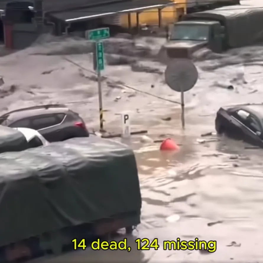 The barrier lake in eastern Hualien county burst Tuesday, washing away a bridge and sweeping into a town with a trail of thick sludge and mud. "It was like a volcano erupting.... the muddy floodwaters came roaring straight into the first floor of my house," Hsu Cheng-hsiung, 55, a neighbourhood leader of Kuang Fu township, told AFP. Lee Kuan-ting, a Hualien County Government press official, said 14 people