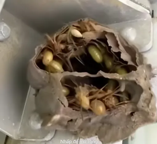 It was large, oddly shaped, and covered in a thick, grayish-white coating that looked like dust. But then it moved. Not the whole thing—just small parts of it, twitching in a way that made the hairs on the back of my neck stand on end.I froze, staring. Then I stepped closer, and that’s when the air itself seemed to drop in temperature. Inside, the nest pulsed with life.Dozens—maybe hundreds—of tiny spiders crawled across its surface, weaving in and out of threads like construction workers on scaffolding. Others sat still, waiting, as if guarding something. And then I saw them: small clusters of white eggs, tucked tightly inside, just waiting to hatch.